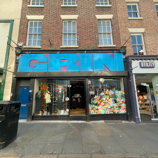 Images of sustainable shops on Bold Street, Liverpool (including Grin, Pop Boutique, and Resurrection); picture credits to Megan Wells.